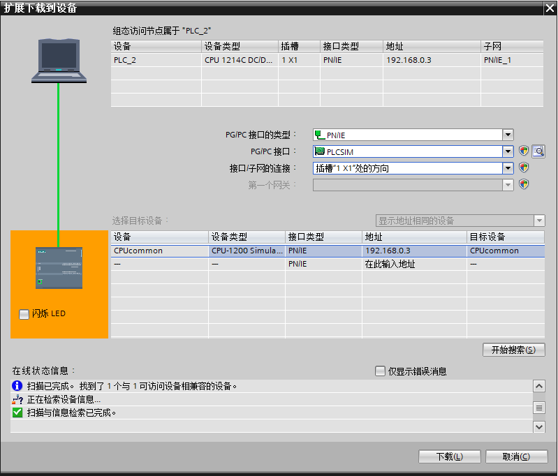 你確定你要仿真?你用的PLCsim v18 還是advanced 5.0, 5.0這個不連接實物的話只需要plcsim 即可,不需要選擇tcp/ip,添加一個plc名稱 然后啟動start 然后博圖網卡選擇plcsim,理論上來講是選你圖片中這個,但是經常連不上,反而plcsim能連上  plcsim就更簡單了,直接在博圖界面直接啟動仿真即可,然后會自動提示你下載程序,當然,手動啟動仿真也可以下載程序,訪問點依舊是plcsim