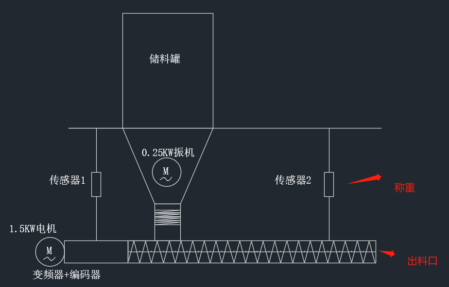 首先要實現儲料罐到螺旋輸送的量是定量,不知你編碼器的反饋哪種,螺旋做到定量出建議用伺服電機