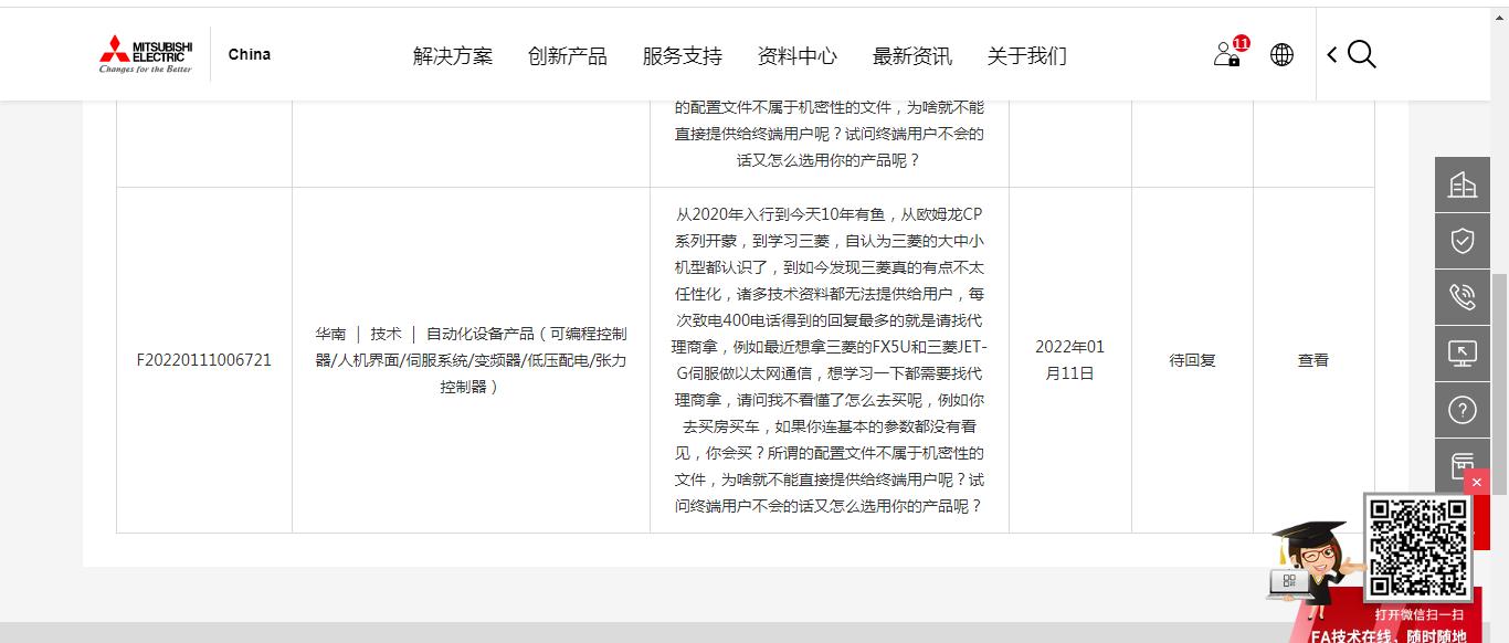 幾年前你可以說(shuō)匯川不行,現(xiàn)在人家做的還算可以了,新能源行業(yè)龍頭A公司業(yè)主推匯川。我們考慮的是性?xún)r(jià)比。我現(xiàn)在說(shuō)的是西門(mén)子的敞開(kāi)服務(wù)不行,要么不要留熱線電話,留了打進(jìn)去還可以進(jìn)下級(jí)菜單,可氣的是你選擇后,它給你自動(dòng)掛斷。三菱和匯川都可以熱線找到人工,我打過(guò)很多次。