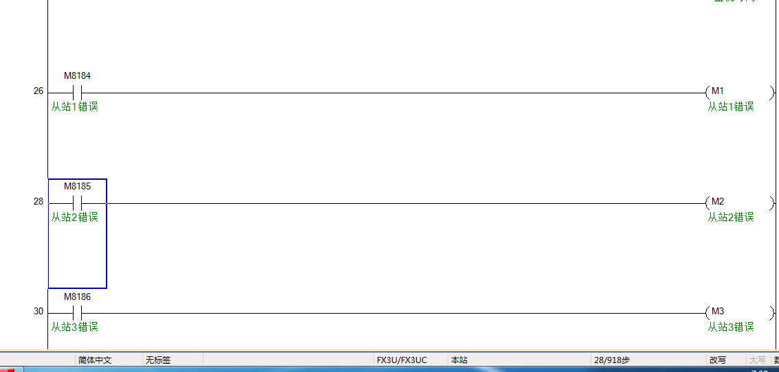 這 是我自己寫的關于一個485出錯的一個程序。M8421給Y12指示燈顯示。