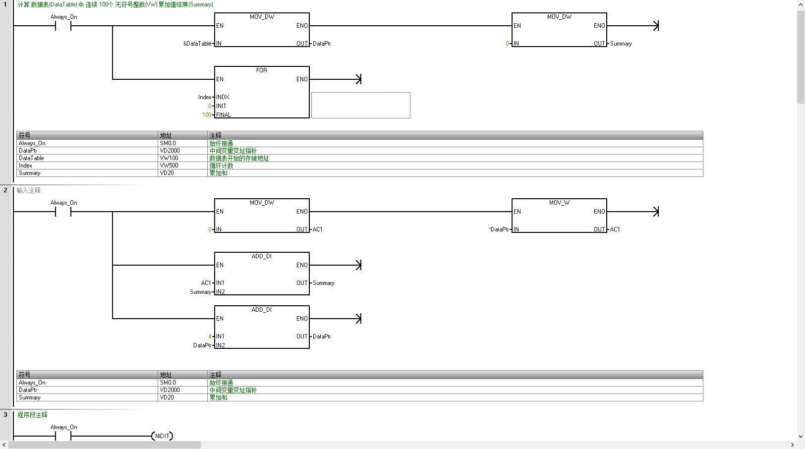 200smart怎么求幾個(gè)連續(xù)地址中的和值,如VW100-VW200,100個(gè)數(shù)的和值呢,用變址加循環(huán),總是報(bào)錯(cuò)。