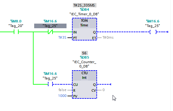 如果訪問定時器DB 結構的Q 成員,將導致定時器更新,且如果因常閉觸點而更新定時器,該觸點將立即復位該定時器。定時器指令的Q 輸出將在一個掃描周期內不為ON,并且依賴型網絡不會執行。 |