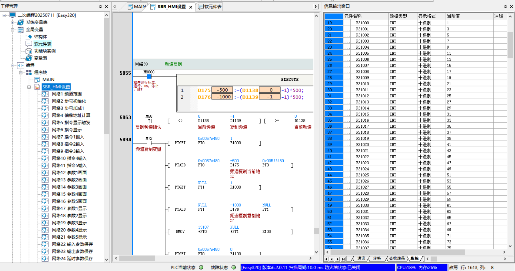 為了降成本,把測試設(shè)備西門子整套物料換成 昆侖通泰HMI 和匯川easy320 PLC,昆侖通泰HMI含稅價(jià)500元,匯川easy320含稅價(jià)700元,伺服換成步進(jìn)電機(jī)一套含稅價(jià)150-350元,換完整套二次編程價(jià)格很低,匯川easy320 PLC內(nèi)存比西門子1200G2大一些,可以寫60個(gè)頻道,每個(gè)頻道100步。昆侖通泰觸摸屏組合框控件和西門子觸摸屏一樣,可以在組合框里寫1000多條不同的指令選項(xiàng),多工位使用時(shí)沒有指令選擇限制。優(yōu)化設(shè)備性能,擴(kuò)充了功能指令,匯川Easy指令速度比西門子快很多,掃描周期快操作更流暢。匯川Easy系列PLC編程和基恩士三菱一樣,程序編寫很簡單,匯川軟件好用一些。 [ 此帖被hezhen880924在2025-10-24 10:02重新編輯 ] |