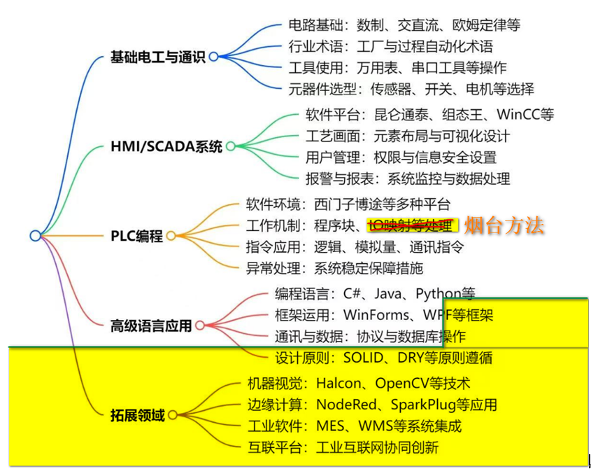 我為什么會想到這一點,以及為什么會想到這個話題,是因為我看到了一張圖,一張工控行業需要掌握的技能的思維導圖: