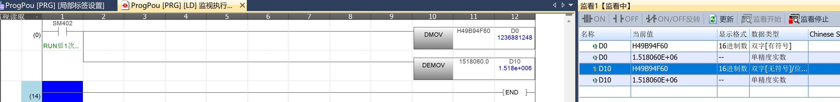 我用三菱觸摸屏,實數方式顯示49B94F60,也是1518060.0。
