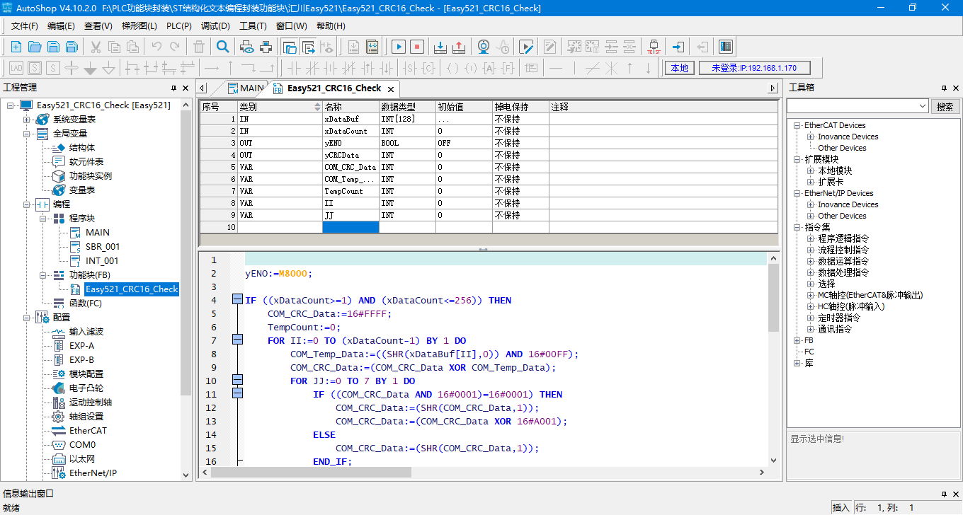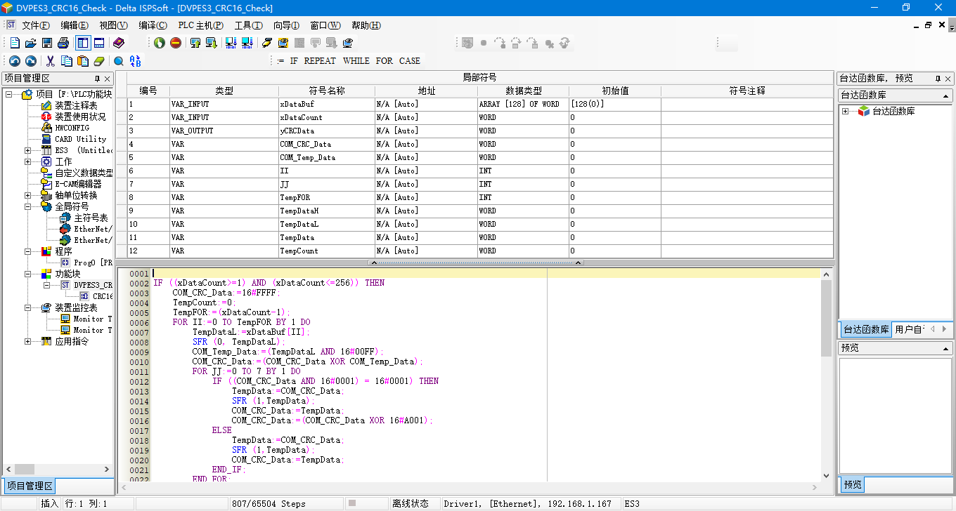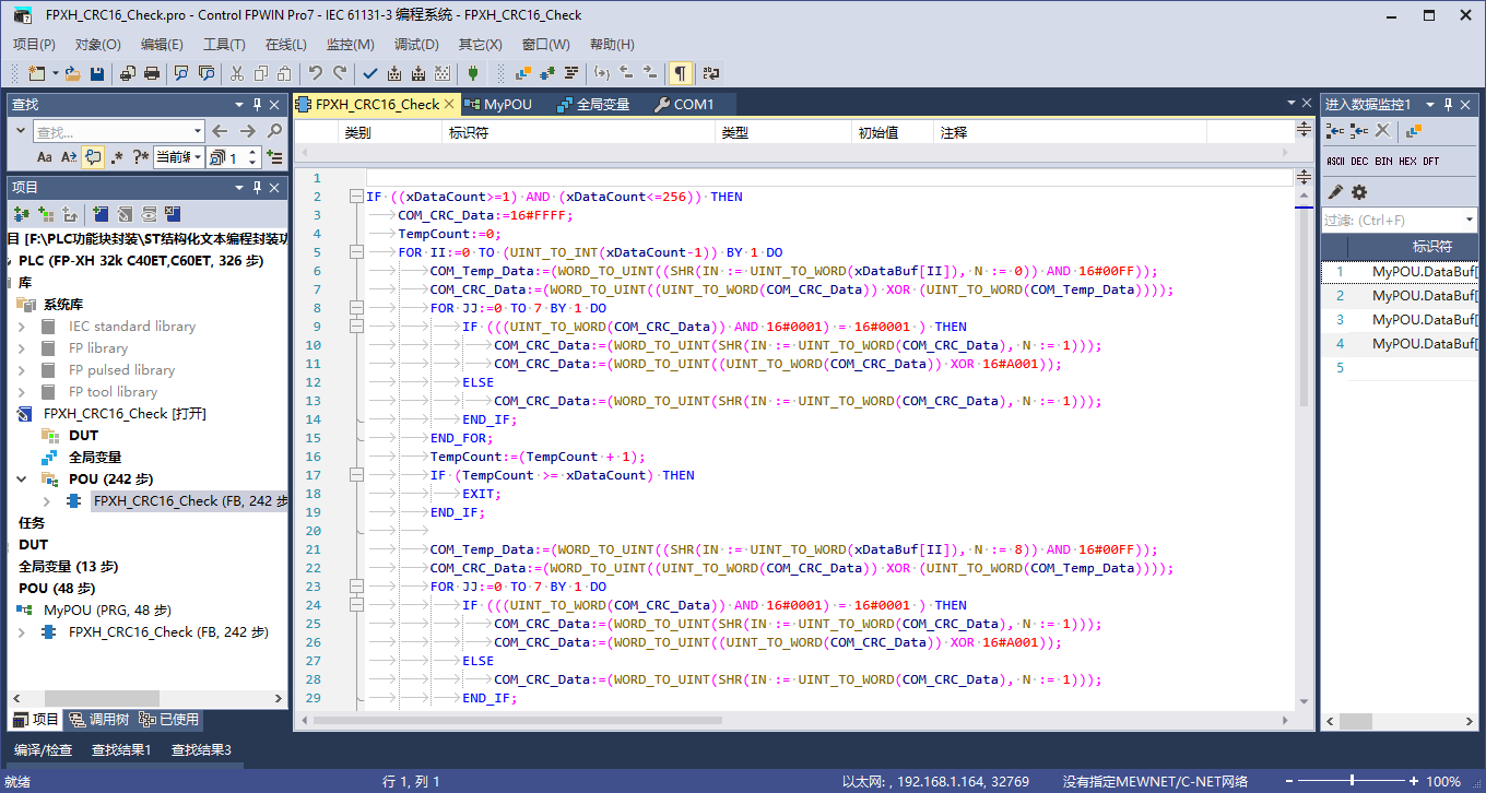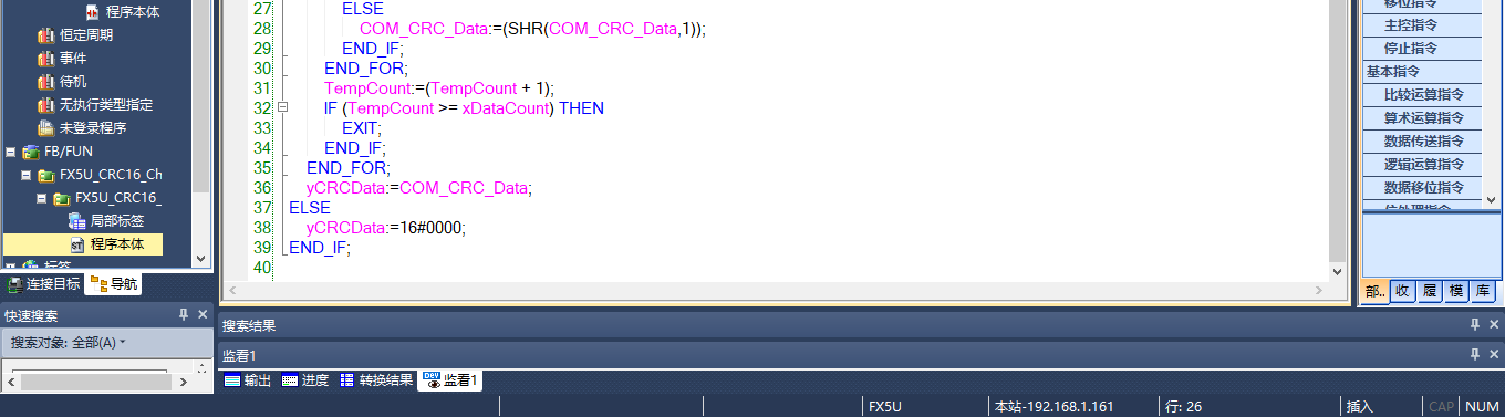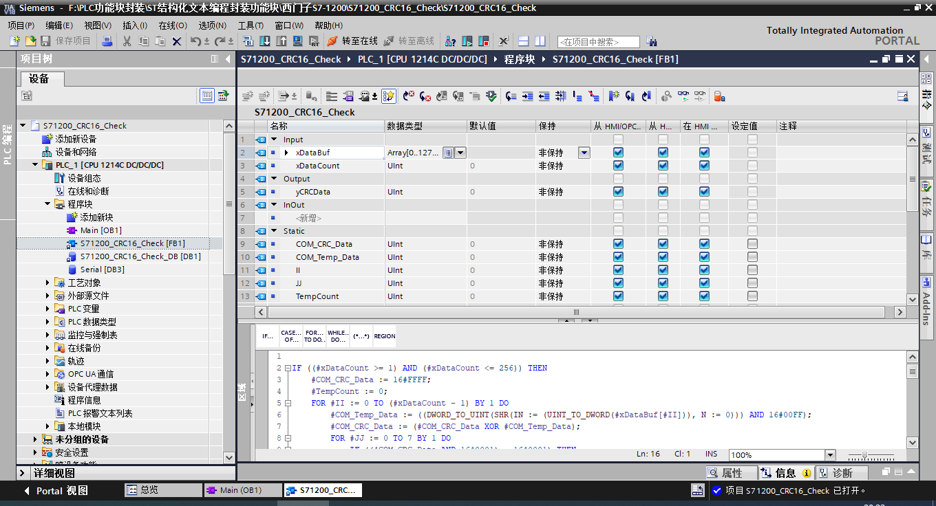 8種PLC結構化文本編程封裝CRC16校驗功能塊