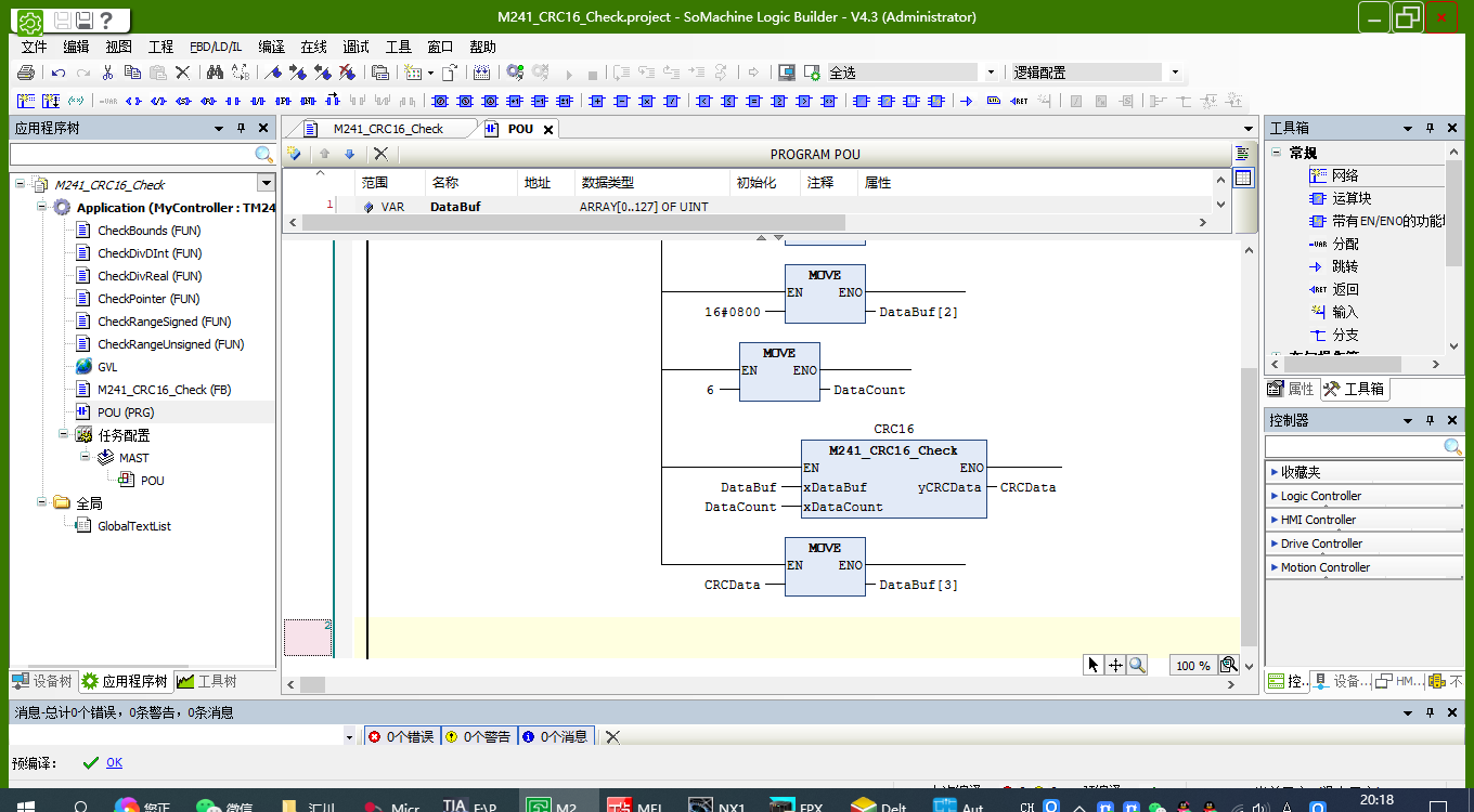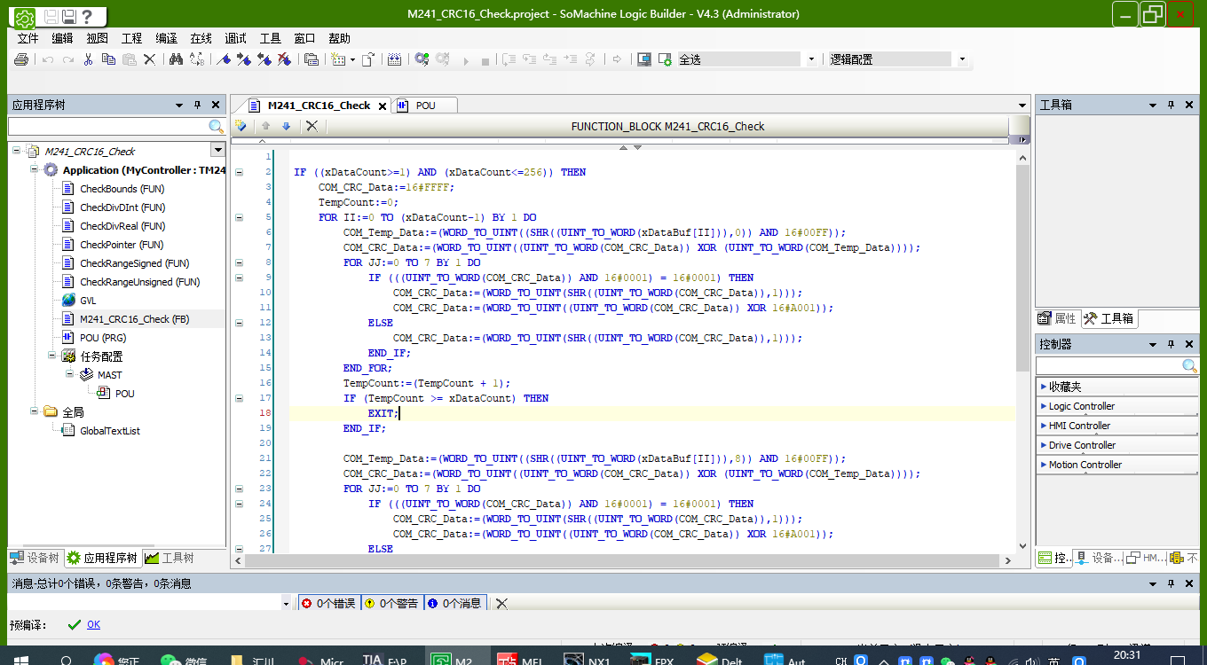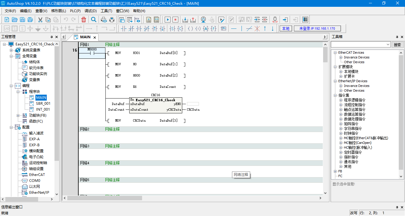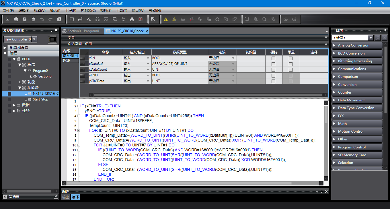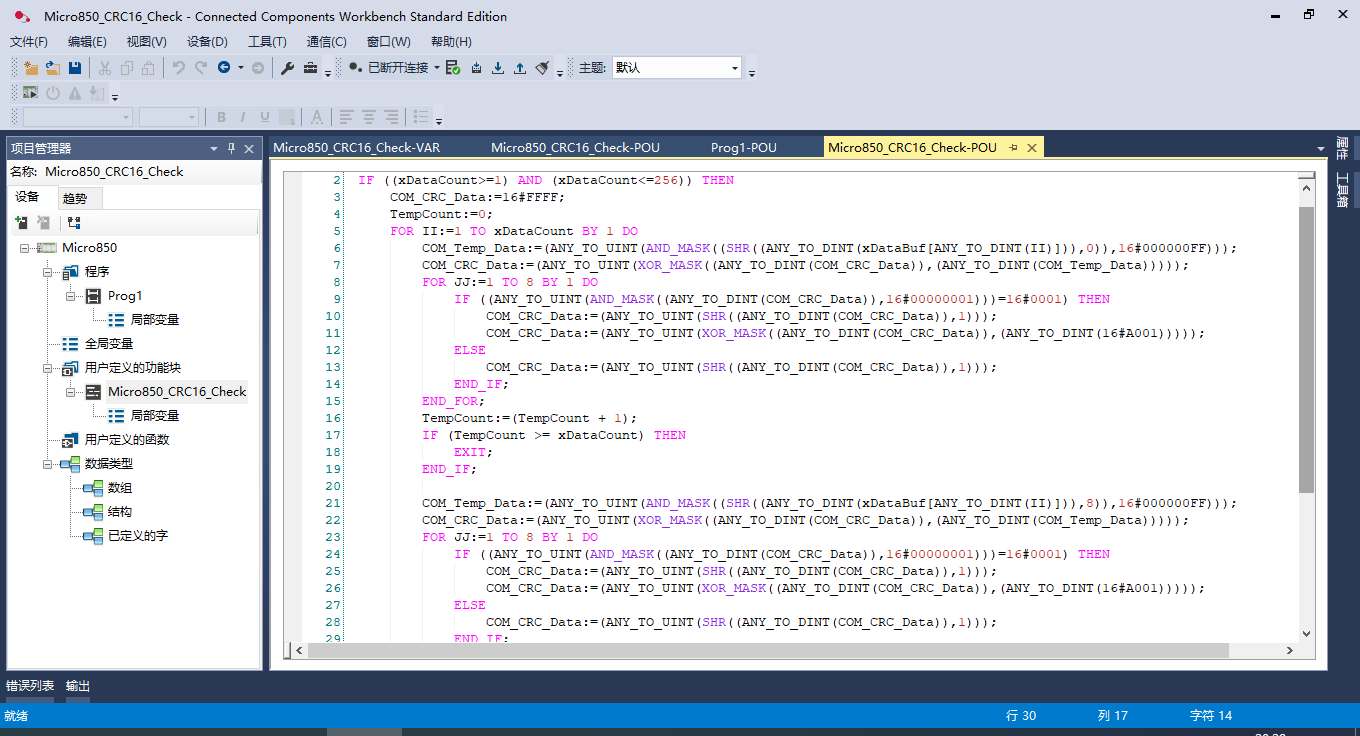8種PLC結構化文本編程封裝CRC16校驗功能塊