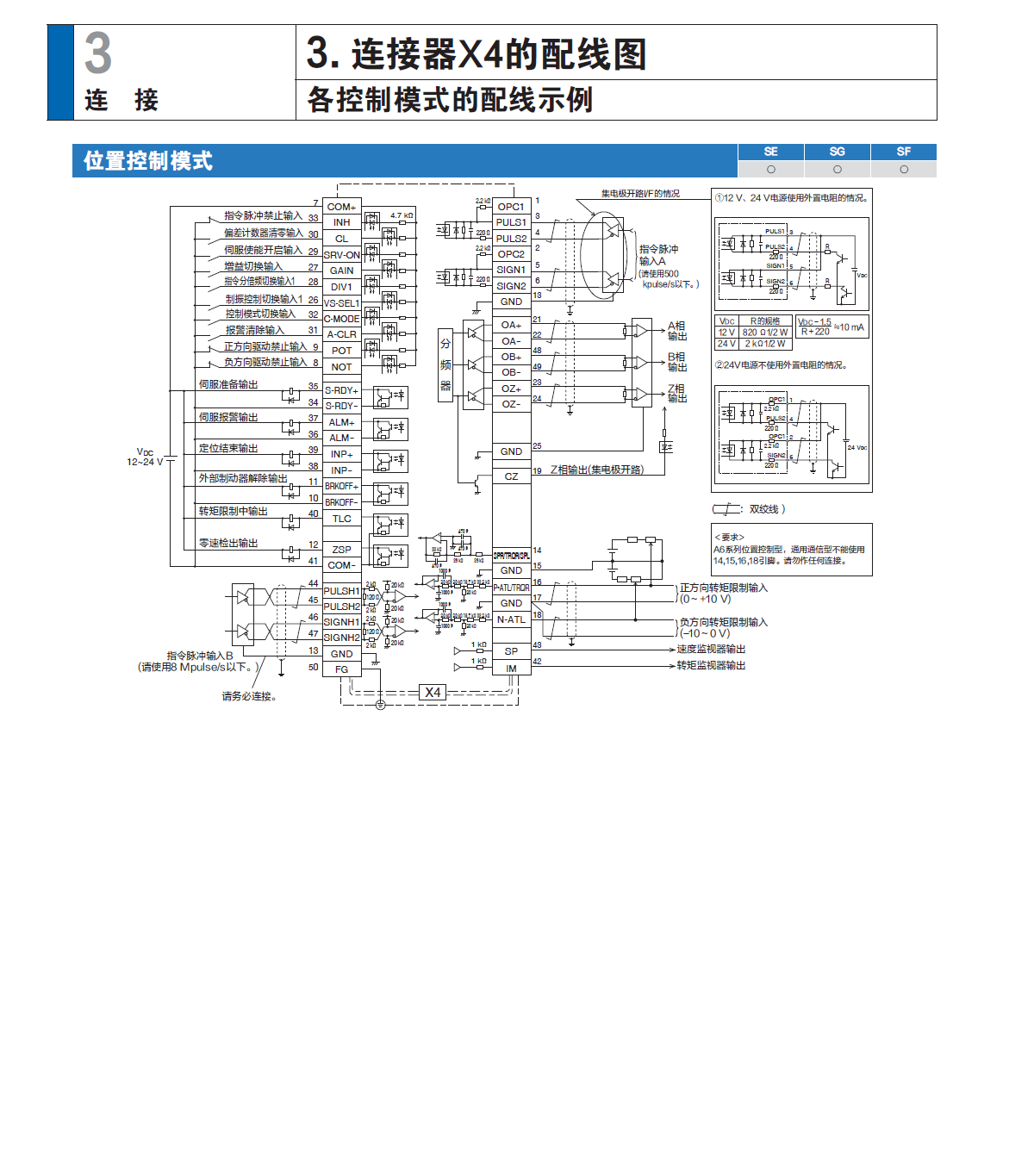 松下的伺服好像還要外接2.2K電阻吧,我記得。只有三菱的可以直接接DC24V.(因為伺服放大器都是5V的)