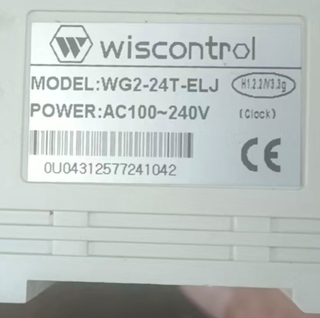 圖中實體是 wiscontrol 品牌的設(shè)備,型號為 WG2 - 24T - ELJ,電源規(guī)格為 AC100~240V,還帶有 CE 認(rèn)證標(biāo)識等信息。