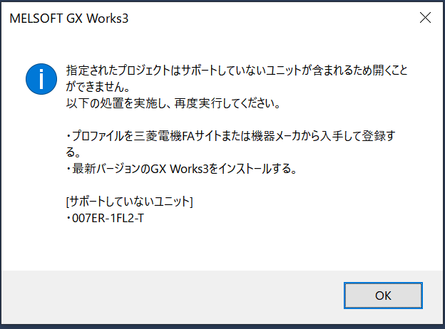 各位大佬 GXwork3打開工程時(shí)候,出現(xiàn)下記彈窗。 有知道怎么解決嗎? 已經(jīng)是最新版本的軟件了。 提示 不支持的Unit 007ER-1FL2-T |