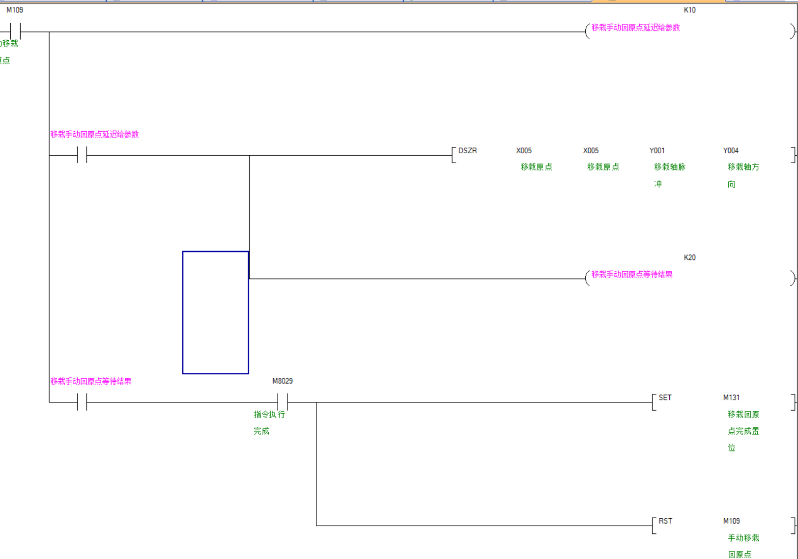 2.M8029,如果我有兩個復位步驟都在走,回原點,他們都用M8029沒事吧,技術跟我說,哪個先回原點完成,它下方的M8029就會導通。我不知道這個下方,有多下。我寫的行嗎?我一個加了延遲,一個沒加延遲,要不要加啊,我好像看別人沒加。