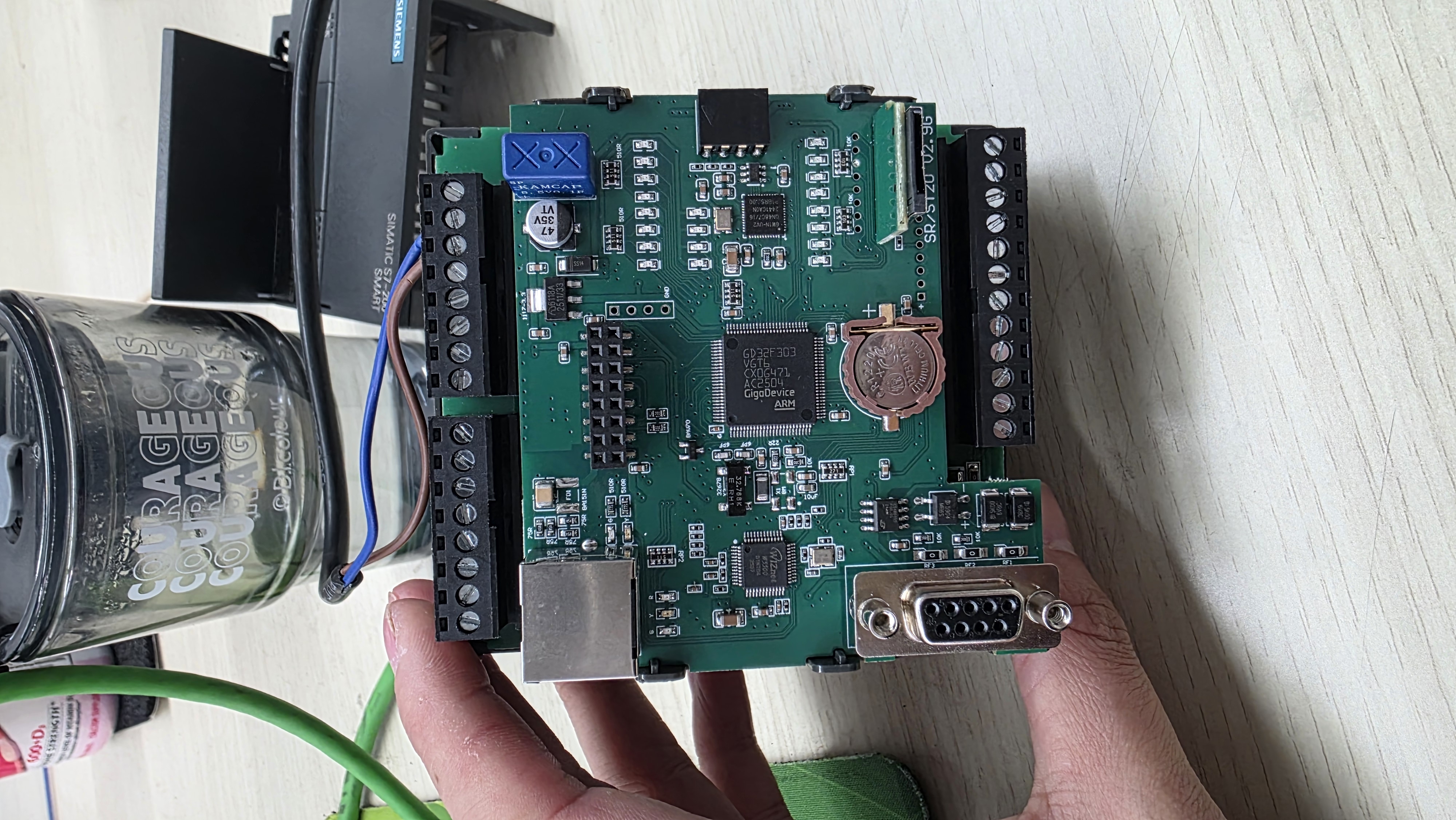 然后我就在對比兩邊的板子,結果發現怎么ST20上面芯片不是Siemens呢,怎么IO板上還有嘉立創的二維碼呢,我真的服了。
