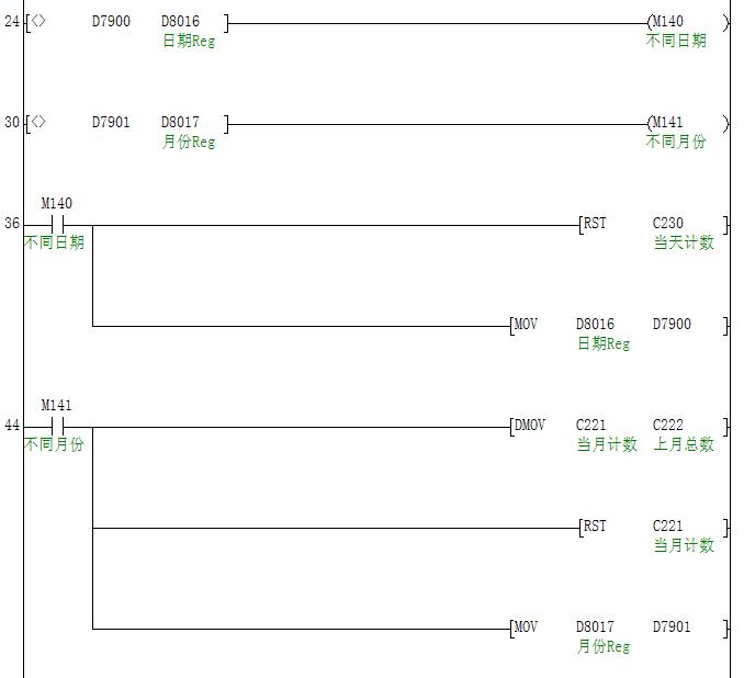抱歉,因個人平時用32位計數器用的少,才把c220,c221等32位計數器當成了16位來分析,經查找資料證實,C220至C234為32位掉電保持型增/減計數器,配套使用的有增計數/減計數切換用的輔助繼電器M8220至M8234.敬請諒解!