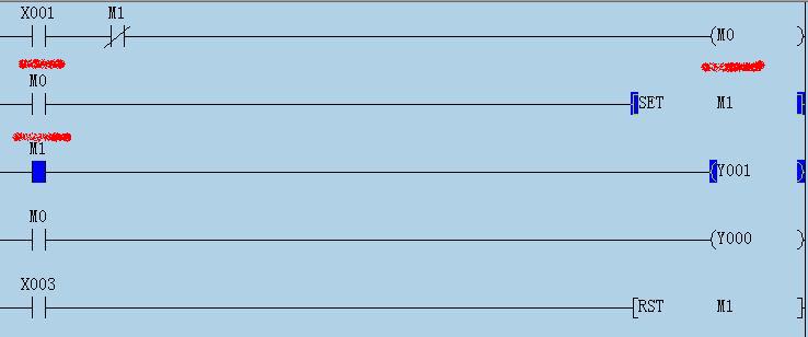 m0是個脈沖信號,給m1置位. x003給m1復位.