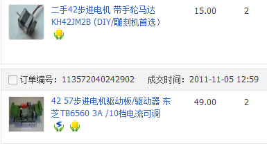 在淘寶買的二手42步進電機15元一個,控制板是全新的,49一套