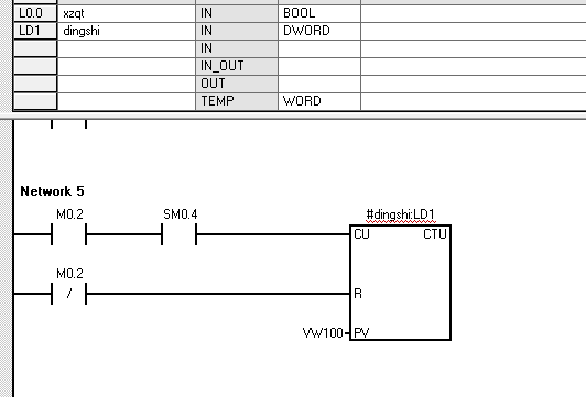 你需要幾個輸入參數:計數脈沖(sm0.4)、計數器(CTU)、計數值(VW100),計數到(當分計數值到達時,打開相應位),計數允許(M0.2),