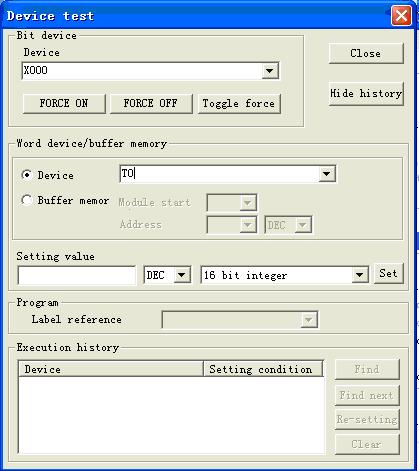 GX Simulator啟動(dòng)后GX Developer軟件會(huì)立即將程序數(shù)據(jù)和PLC參數(shù)數(shù)據(jù)等寫入到GX Simulator中(文件寄存器和軟元件初始值不會(huì)被自動(dòng)寫入),并進(jìn)入監(jiān)視模式。此時(shí)即可通過GX Developer軟件的【Online】--【Debug】進(jìn)行程序調(diào)試了,一般情況下通過軟元件測(cè)試和調(diào)試功能就可以實(shí)現(xiàn)大部分的程序調(diào)試。