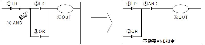 執行相同動作的梯形圖通過優化觸點構成的方法,可以簡化程序和節約步數。基本原則是串聯較多的梯形圖盡量寫在上方,并聯觸點較多的梯形圖盡量寫在左方。