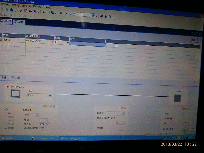 我用flexible軟件寫了個HMI程序,然后就開始和PLC224連接上(PPI傳輸程序線纜),