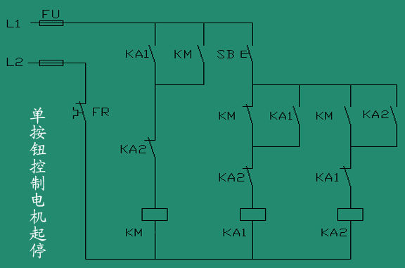 我認為你的電路首先是有問題的,燈就亮不了,因為在你按下SB時繼電器KA1常閉觸點先斷開然后常閉觸點再閉合,會出現KA1瞬時得電又失電,KA2也得不了電。