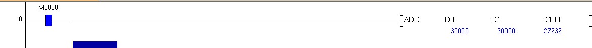 FX2N 程序中要把16個16位計數器數據相加求總和,現在的做法是:先分成八組,用ADD 指令兩個兩個一組相加,得出的結果再兩個兩個相加,最后求出總和,最后當數據過大時會溢出,例如最后30000+30000結果存儲在D100,D101中,D100數據是 27232 ,D101數據是  0  運算出錯, 要怎么處理才能都得到準確數據,多個數相加要怎么解決數據過大溢出的問題。