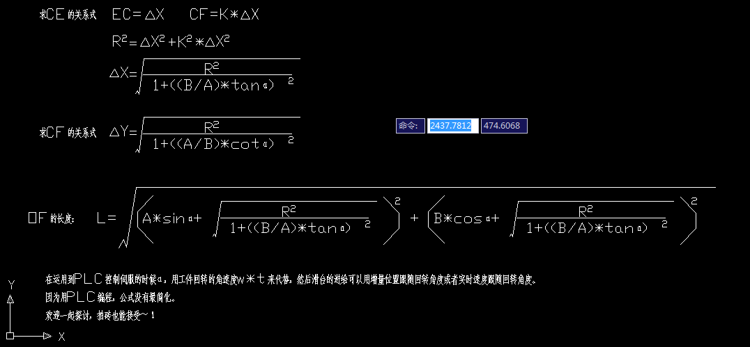 1.角度,并不是表示的問題,而是旋轉的角度就不是你標識的角度。正確的旋轉角度是砂輪圓心與橢圓圓心與X軸正向的角度。 2.AB不是表示橢圓長短軸,那我不明白這兩個已知量是如何來的。 3.切線斜率計算錯誤。斜率等于Y/X,必須是直線經過原點才行,橢圓的切線根本沒經過原點,網上找一下正確的公式看看吧。 4.你的計算思路是錯的,邏輯也是錯的。 |