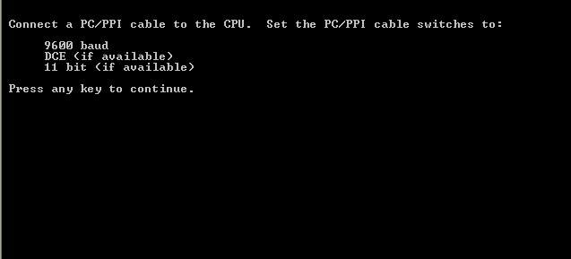 西門子 S 7 200  CPU出廠的缺省設置是通信口地址為2,波特率為9.6K ,用國產PC- PPI電纜更改通訊波特率為187.5k后無法通訊,注意此時就算在STOP狀態也是不能上載程序的,對于普通編程電纜,搜索速率最高為19.2,如果CPU通信口速率被設置為187.5K,則不能被找到,唯一的辦法就是買一根西門子原裝PC-PPI編程線,原裝線支持187.5波特率,聯機后改回來就可以了,由于手頭一時找不到原裝線,所以只能想另外一個辦法那就是使用西門子提供的 wipeout.exe 程序,恢復CPU的出廠設置,軟件啟動后界面如圖片所示,輸入COM端口號確定,提示輸入密碼恢復出廠,不知道這兒密碼是多少了,有用過的朋友知道怎么操作嗎