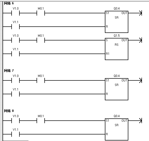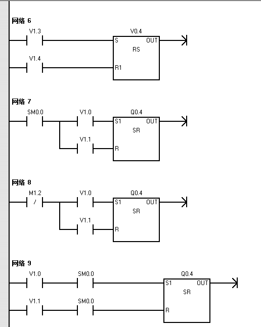 為簡(jiǎn)化程序,你可以使用set/reset對(duì)線圈操作,而不使用RS觸發(fā)器。