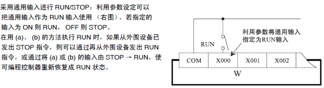 參數設置里指定RUN端子,該輸入點ON,PLC RUN.該點OFF PLC STOP