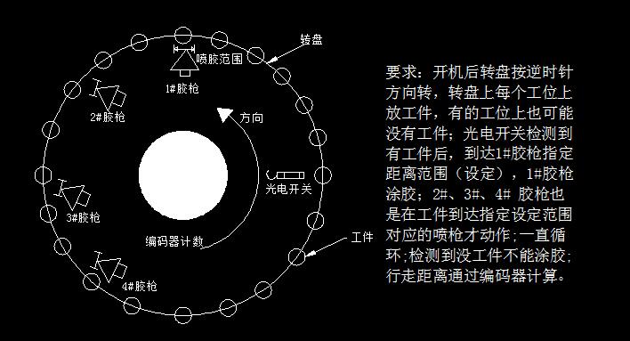 謝謝這位朋友,編碼器是用來計算行走距離,距離是指從光電開關開始為0位計算,1#、2#、3#、4#槍分別單獨設定一個距離,到這個指定距離噴槍動作涂膠