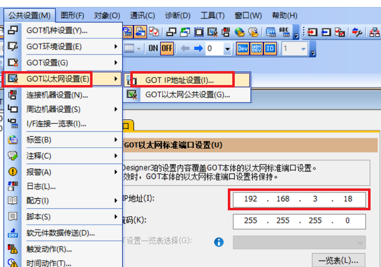 3、點擊 公共設置 ,GOT以太網設置,GOTIP地設置,確認一下IP地址: