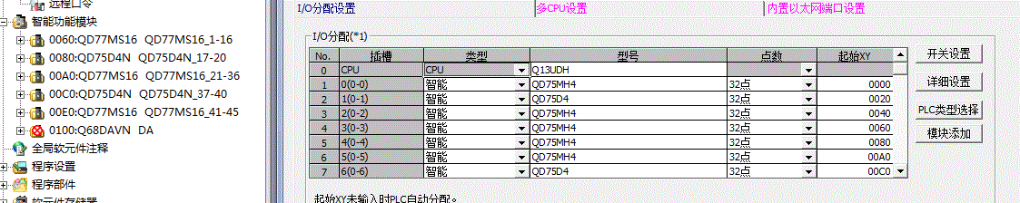 大家好 公司有一臺設備 PLC程序下智能模塊顯示的與實際PLC設定的智能模塊不符 我參照PLC的插槽號跟IO起始號新建的定位模塊 連上PLC后怎么所有的QD75D4模塊讀取不出來 其他的QD75MH4的都能讀取出來 還需要設置什么才能讀取嗎 麻煩解答了