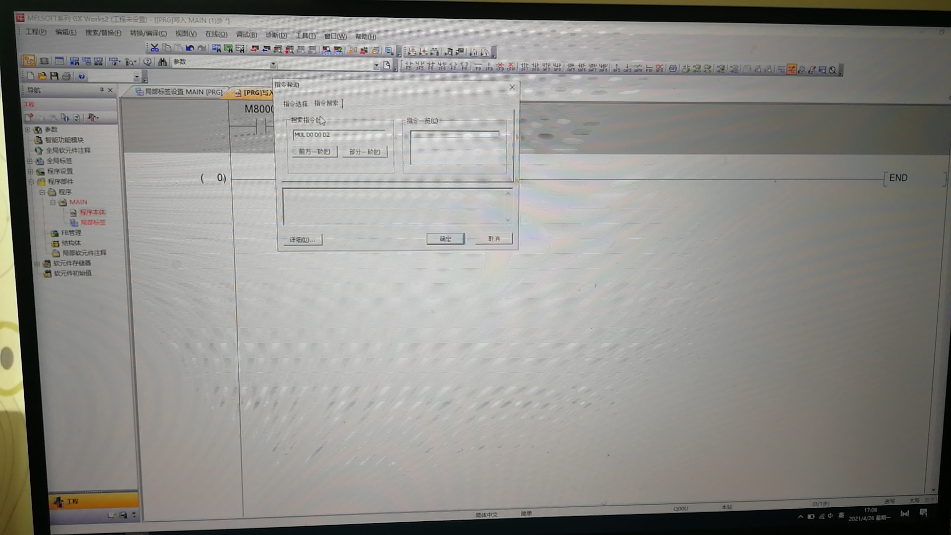 請教一下三菱編程軟件寫運算的時候一直出現指令幫助,比如M8000寫完后,我再寫MUL D0 D0 D2然后按確定就會出現指令幫助框,梯形圖打不上去中括號內容。有知道是怎么回事的嗎?謝謝