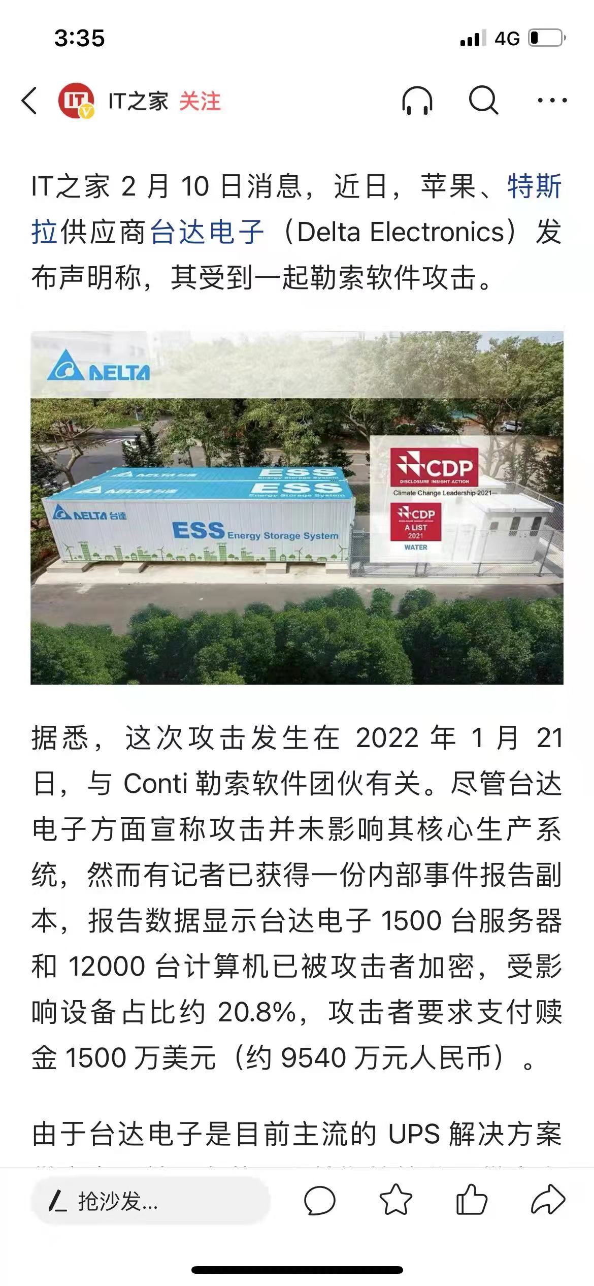 臺達的官網一直顯示維護中,昨天從微信群里才知道!是被黑客劫持了,勒索1500萬美刀!