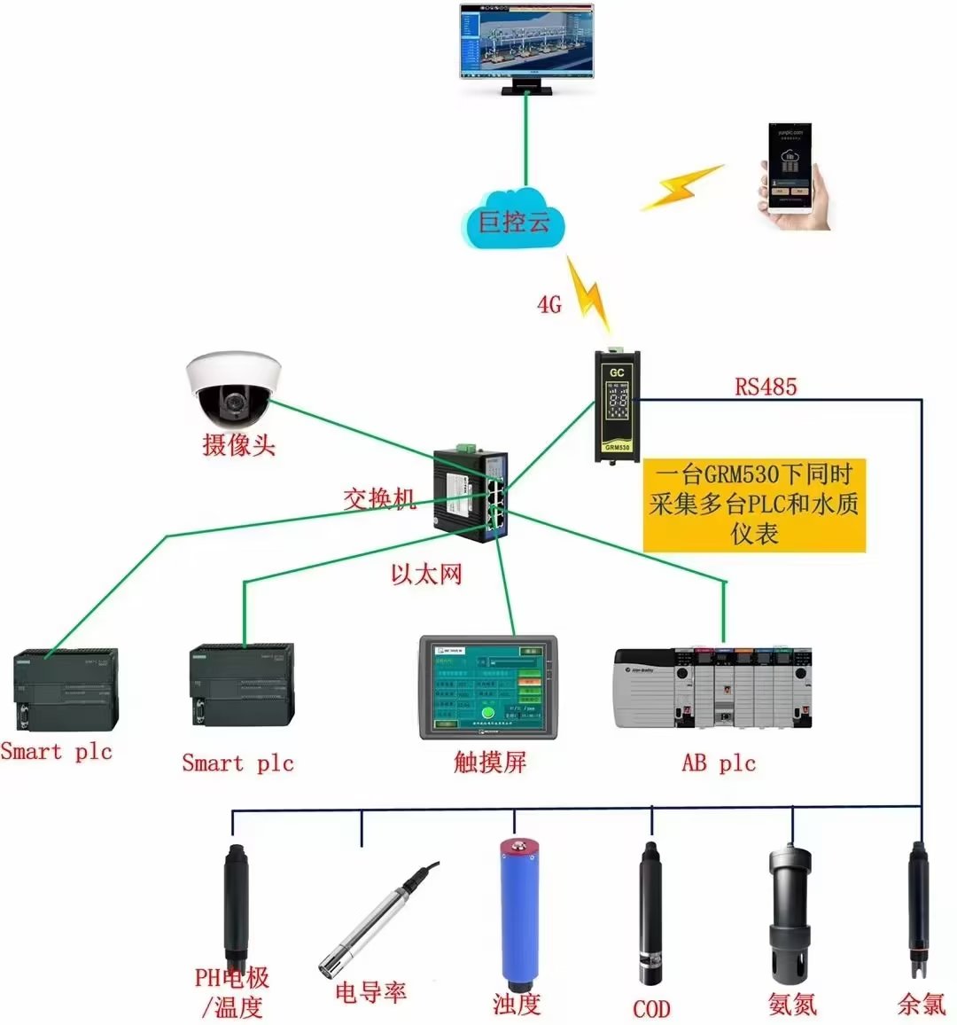 GRMOPC模塊直接讀取易控組態軟件opcserver上云端手機app監控,還可以訪問dcs,如和利時,浙大中控,新華,abb,霍尼,pcs7等