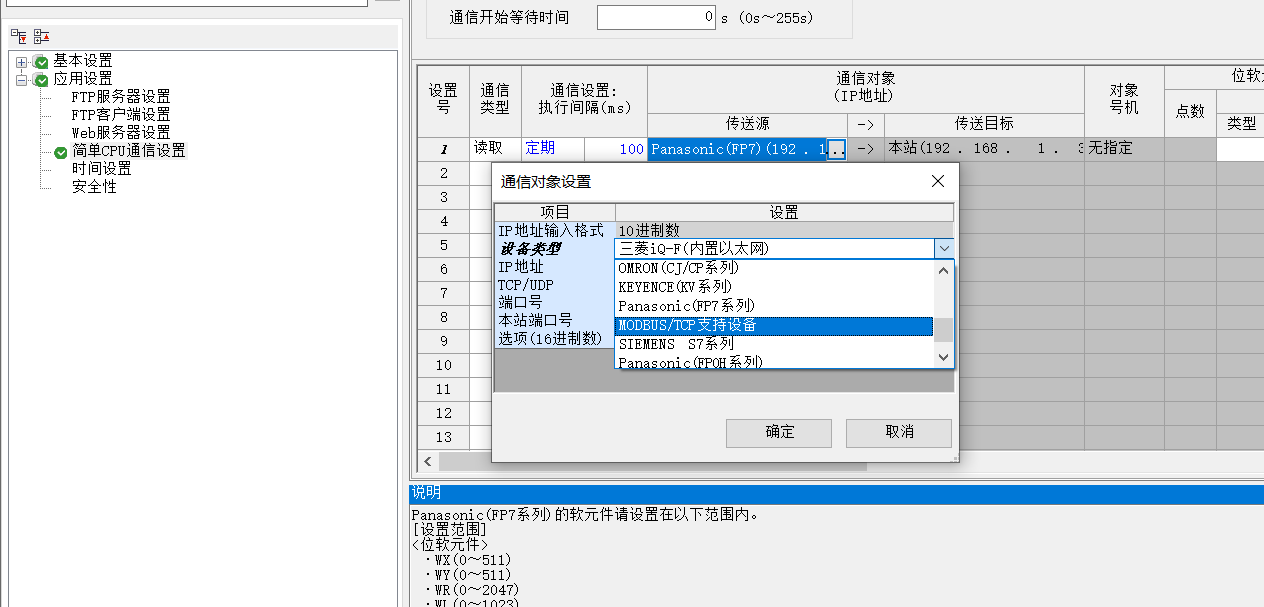 老夫眼睛沒看錯的話,是松下FP7,它的以太網不是支持Modbus TCP和MC協議嗎?可以用這簡單點。 |