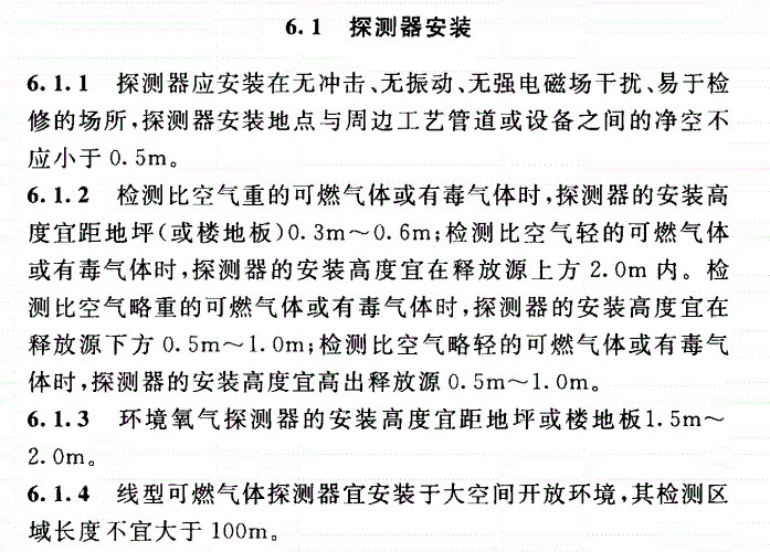 可燃氣體探測器安裝