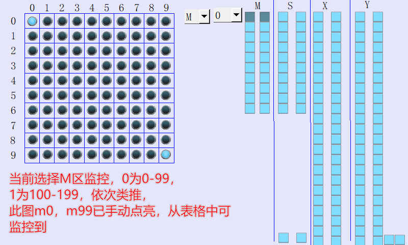 引用引用樓主ywkstart于2023-08-10 17:12發表的 威綸通宏指令應用,尋址賦值做個監控頁,包含M區S區X區Y區 :因為工作的時候,看別人寫的程序,用M做流程,還跳來跳去,有些PLC監控還只顯示on和OFF,找起來太費眼,因此花了點時間用宏做個監控頁,此觸摸屏程序做了常用的地址區間,可以自己增加,M區只監控到m0-m999,s0-s999,八進制的x和y,監控200個點,十進制的xy就做的和m s區一樣。效果如圖片顯示