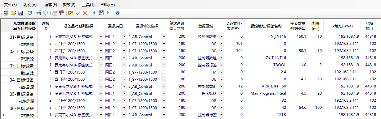 任務01:讀取西門子DB101.DBW0開始的80個的INT類型的數據,寫入到羅克韋爾AB的IN_INT16控制器數組(從0開始),共160字節;