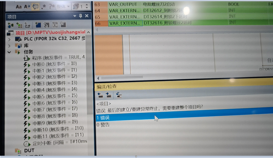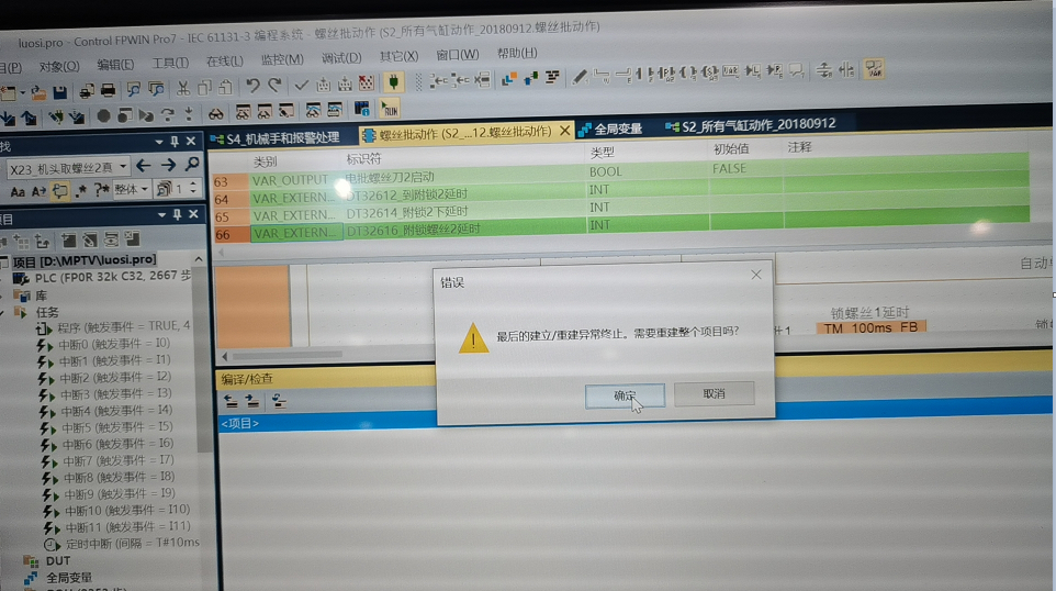 然后就是從現(xiàn)塊機(jī)器讀取出程序,編譯也沒問題,但我用電腦修改,不管是功能FB,還是程序,都會(huì)卡在如下圖所示。