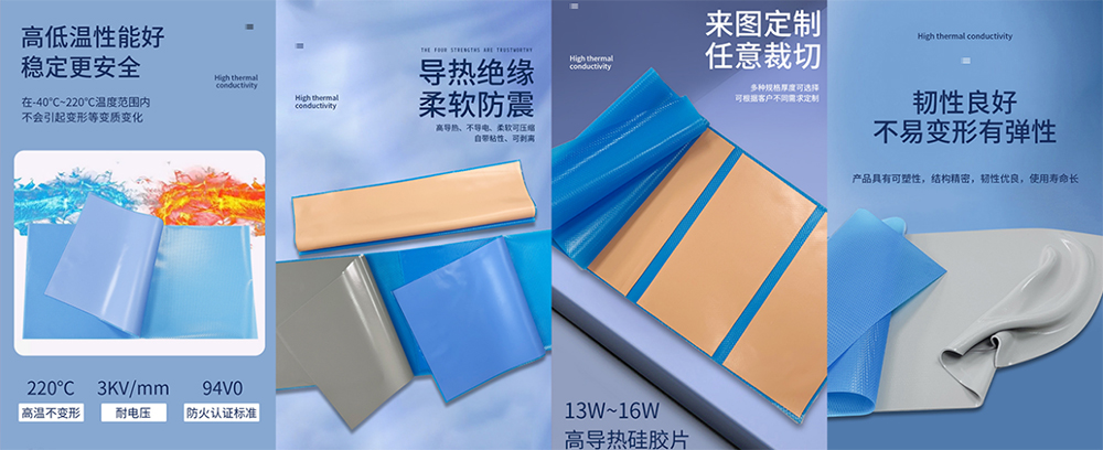 當設計需要兼顧導熱、絕緣、減震與密封時,導熱硅膠片便成為首選。它不僅具備良好的導熱系數和高等級的耐壓絕緣能力,更擁有卓越的彈性和厚度可選性。其柔軟且可壓縮的特性,能輕松應對較大的裝配公差,廣泛應用于網絡設備、汽車電子、消費電子等領域,為VR設備、顯卡、電源模塊等提供全面保護。
