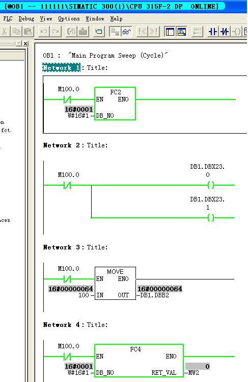 網(wǎng)絡(luò)2:必須調(diào)用FC2(CNT2_CTR),指定W#16#1即為設(shè)定FM250-2的數(shù)據(jù)塊為DB1;