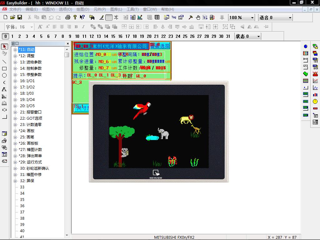 自己做的磨床程序,我對軸承專用磨床非常了解了,做著玩的。屏保照抄了一個,沒有用那個宏程序,覺得返回原畫面不好處理,不如結合PLC來控制來的簡單