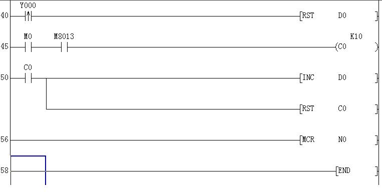 為了便于模擬,圖中本應使用M8014,改成M8013,次數也改短了,另外M2和M3是自己調整時間后的確認按鈕(置ON型),用瞬ON也可,再加幾個輔助繼電器。