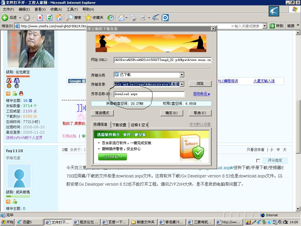 今天在三菱自動化(上海)有限公司、http://www.meas.cn/download/dwn_idx_manual.asp#/資料下載/手冊下載/變頻器E700應用篇/下載的文件卻是download.aspx文件。還有軟件下載/Gx Dexeloper version 8.52也是download.aspx文件。以前安裝Gx Dexeloper version 8.52也不能打開工程。請問ZYFZXH大俠,是不是我的電腦有問題了, |