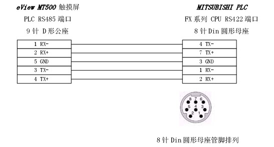 你好:MT506與三菱FX1S的通訊線怎么做啊?